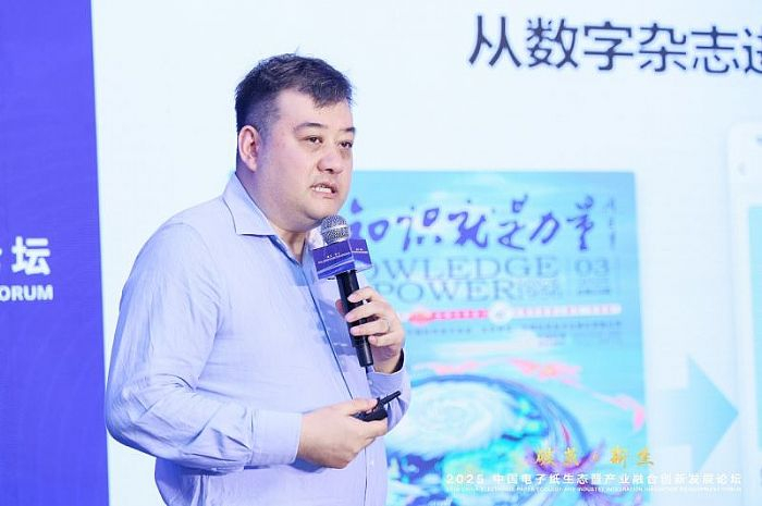 中国音像与数字出版协会副秘书长李弘发表致辞。李弘讲到,近年来,我国数字阅读市场的营收规模稳步攀升。2024年的规模有660亿元,占出版业的一半,用户为6.7亿,作品总量达6300万种,这为电子纸行业的发展提供了广阔空间。中国音像与数字出版协会将和中国电子阅读器厂商一同关注行业生态变化。他呼吁厂商们需加强上下游协同、共建生态,全力支持电子纸生态产业迈向新高度。