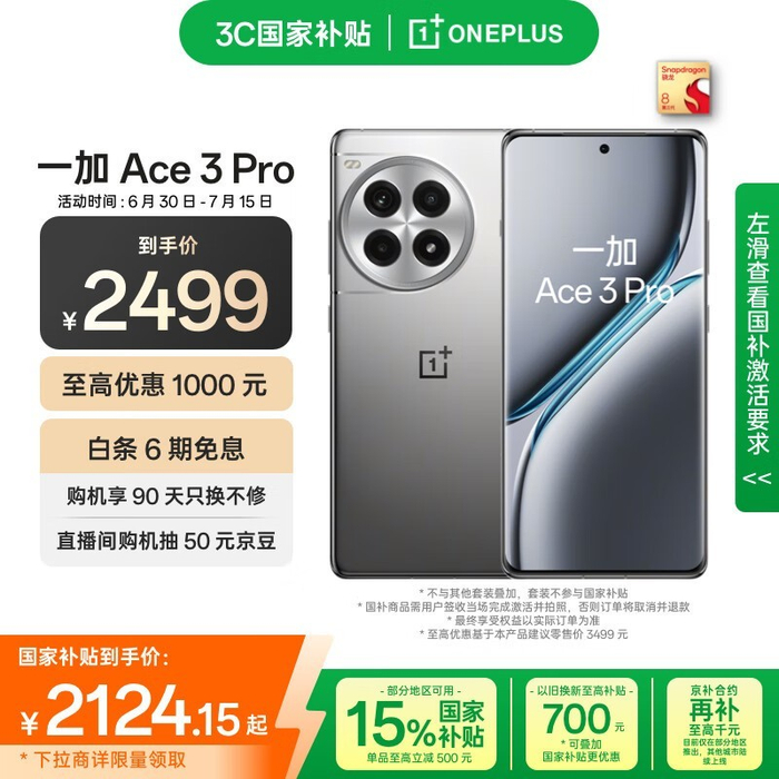 一加OnePlus Ace 3 Pro 5G手机京东促销价2088元