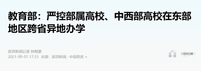 其一,严禁名校跨省异地办学,支持新增高校资源向中西部倾斜。