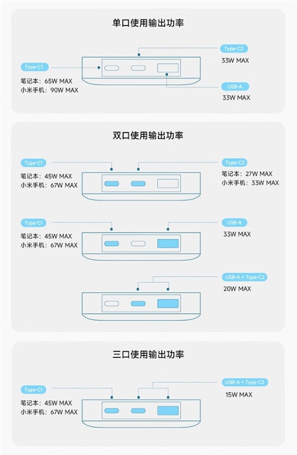 兼容多种主流快充协议,包括兼容PD、PPS、QC、小米快充、华为SCP 22.5W、UFCS融合快充等。