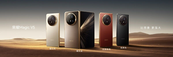 荣耀Magic V5将于7月4日在荣耀商城、各大授权电商、荣耀体验店、授权零售门店正式开售,提供曙光金、丝路敦煌、暖白色、绒黑色四款全新配色,售价8999元起,并且发布业内唯一的免费“内屏宝”。