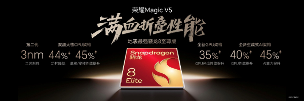 在性能层面,荣耀Magic V5以 “一步不退” 的零妥协态度,带来八大满血体验,实现折叠旗舰的突破性提升。荣耀Magic V5搭载骁龙8至尊版8核满血芯片的折叠屏手机,能够轻松应对满帧游戏,为用户呈上流畅、高效的使用感受。
