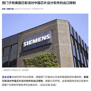 据央视新闻,当地时间7月2日获悉,德国西门子股份公司收到美国政府的通知称,美国已取消对中国芯片设计软件的出口限制。根据公司声明,这家德国供应商已恢复中国客户对其软件和技术的全面访问。