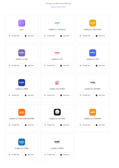 如今,Bubble已成为韩国最具影响力的粉丝互动平台之一,SM娱乐和JYP娱乐在内的114家韩国知名经济娱乐公司,为570位艺人的粉丝构建了数字化沟通直通桥梁。