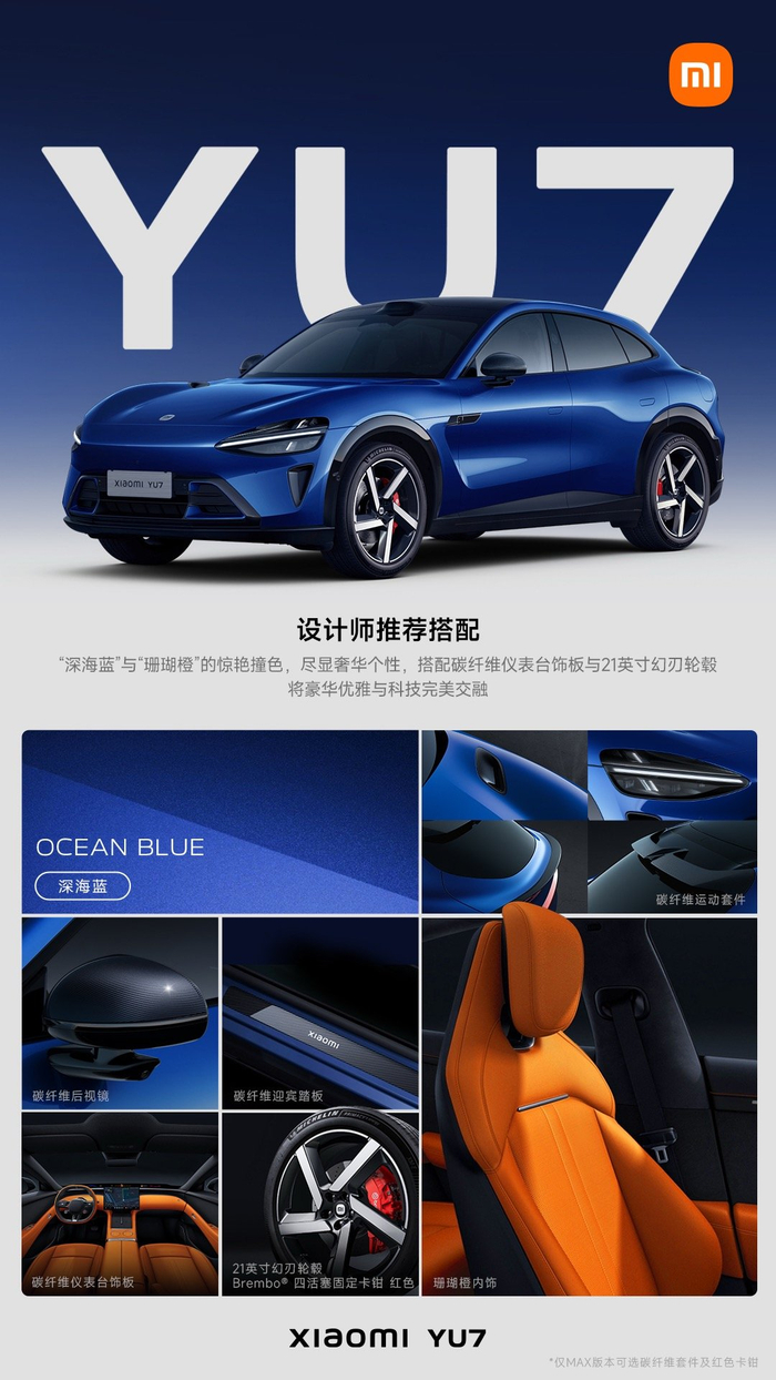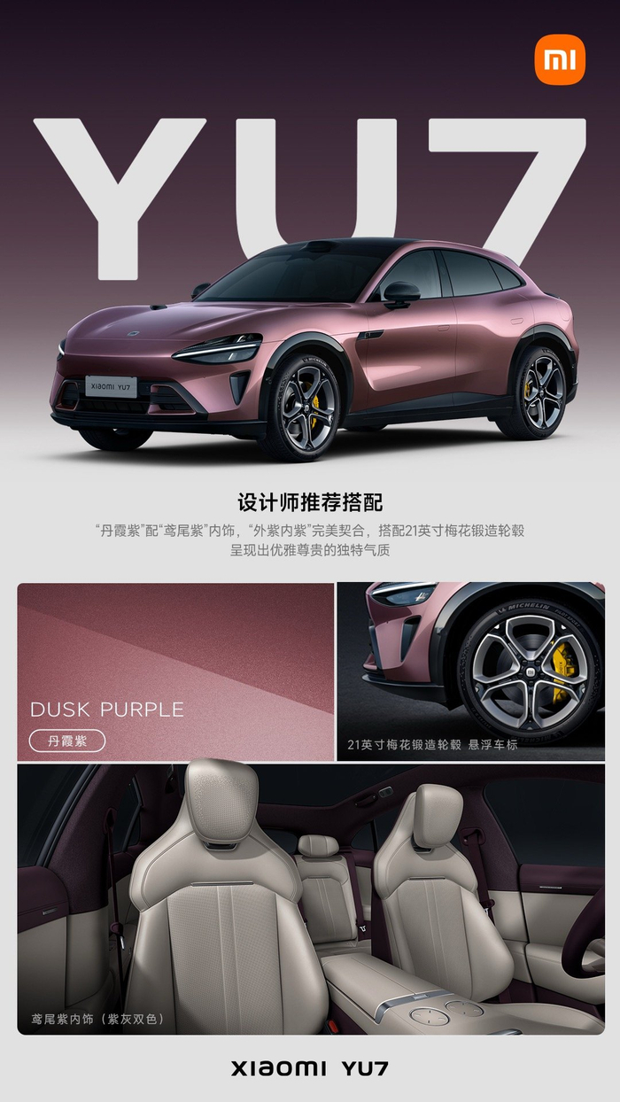 4.小米 YU7 的外观和内饰颜色都太丰富了,有什么官方推荐的搭配建议么?