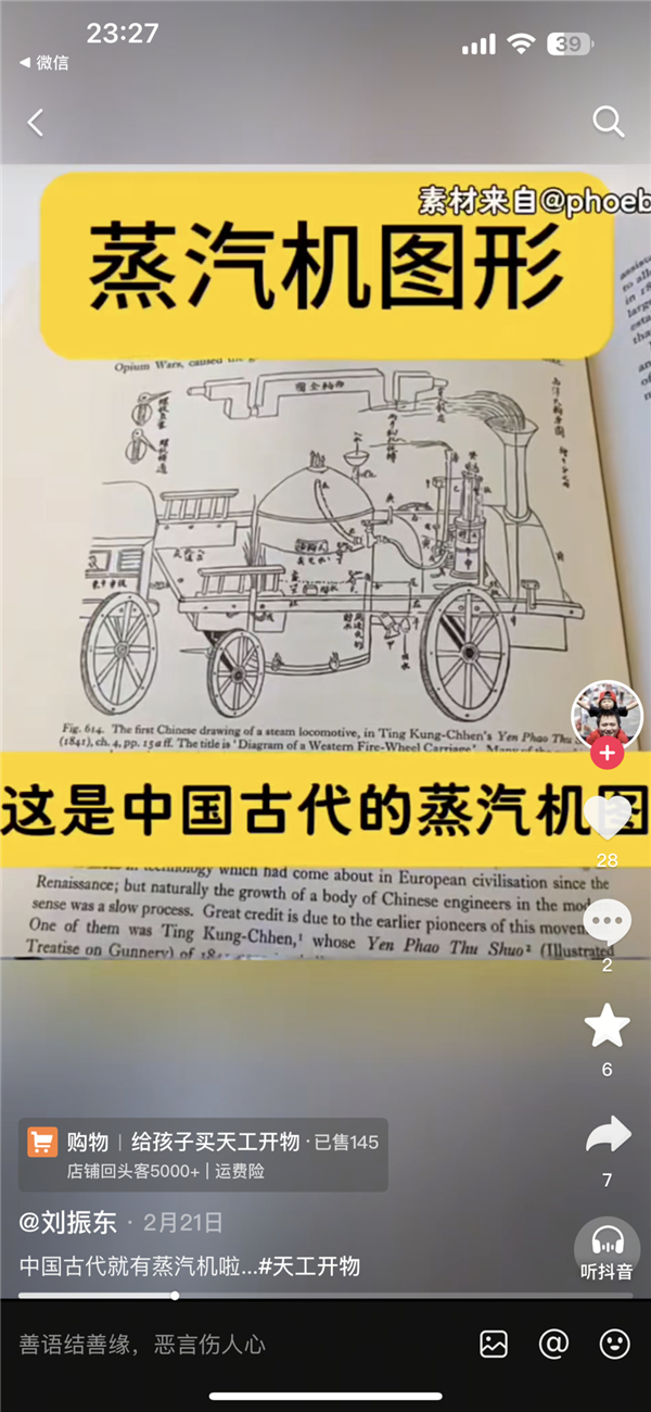 什么iPhone和蒸汽机是从《天工开物》来的、二进制是从《易经》来的,还是有大量人相信郑和宝船用的是蒸汽机,瓦特是看了中国神书才有了灵机一动,就连卖未成年科普读物的广告都拿这种说法当噱头,相当抽象。