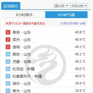 快科技7月5日消息,截至今天14时,全国高温排行榜前十多数席位被山东霸占。