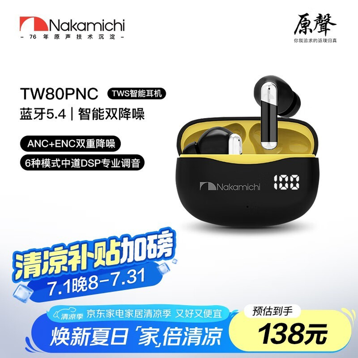 中道真无线降噪蓝牙耳机129元历史新低