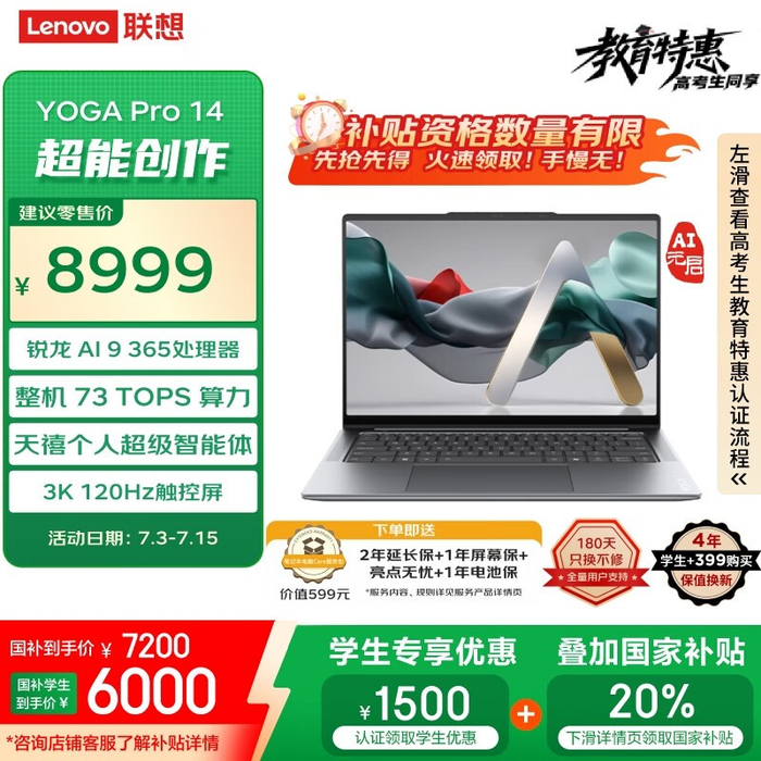 联想Lenovo YOGA Pro 14 AI元启版京东优惠