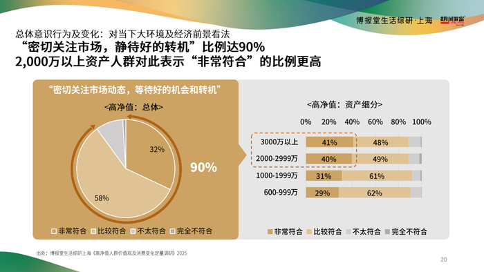 90%高净值人群密切关注市场动向,静待转机;资产超2,000万群体对此态度更坚定。