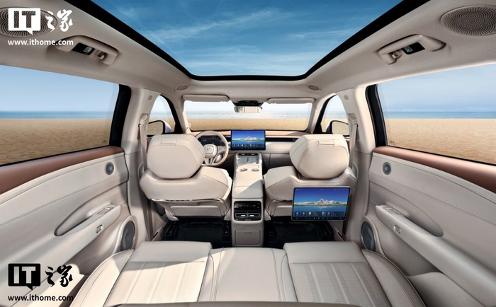 新车配备云朵座椅 2.0,新增了女王副驾可做到 163° 舒躺设计,前排座椅支持 8 层舒适设计,后排采用 7 层舒适设计,在保持承托力的同时兼具包裹感和舒适度。同时,新车前排扶手箱还搭配 7L 双侧开门冷暖箱,可实现-6-50℃宽域精准温控,常温到 0℃制冷仅需要 10 分钟,杀菌率 99.99%。