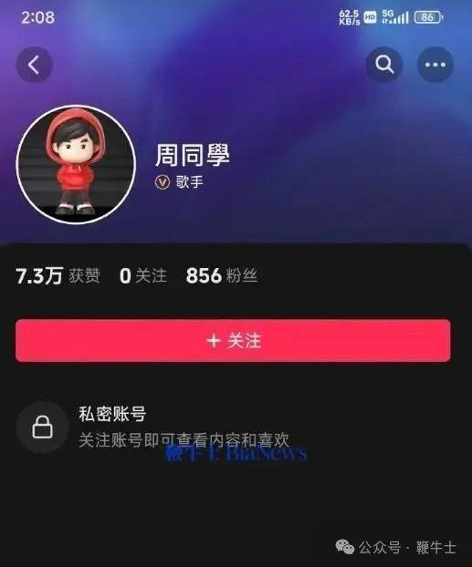 主页显示,私密账号ID为周同学,认证为歌手,并且头像与此前周杰伦公布的官方二次元头像一致。