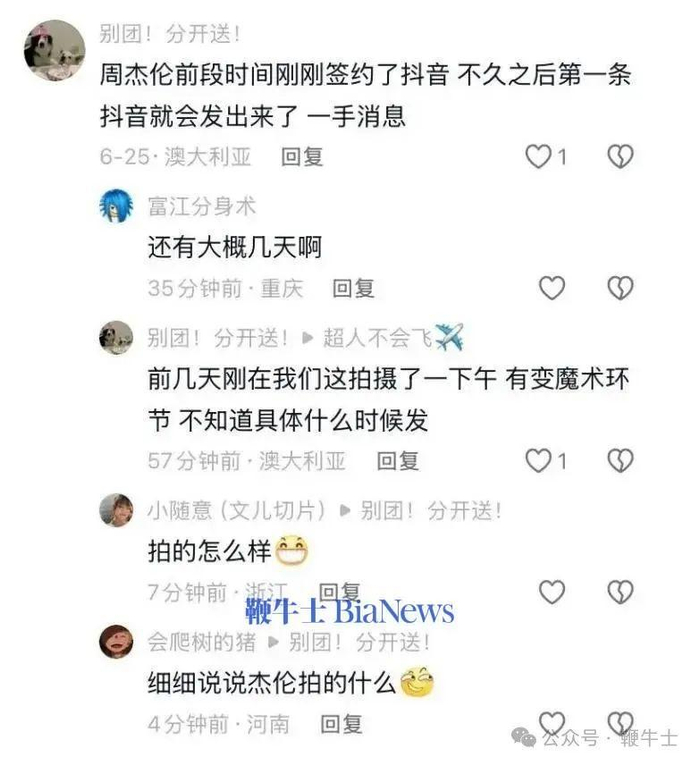 来自澳大利亚的网友表示,不久之后周杰伦将会发布其第一条抖音,该网友称该抖音在澳大利亚拍摄,有变魔术环节。
