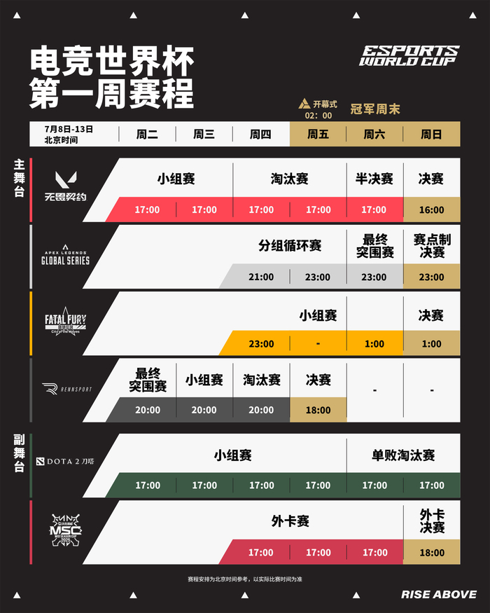 除《无畏契约》《DOTA2》外 EWC 电竞世界杯本周还将举行《APEX 英雄》《饿狼传说:群狼之城》《Rennsport》《决胜巅峰》的比赛。