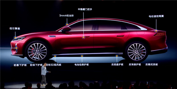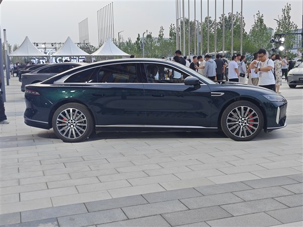 侧面非常流畅,配备半隐藏式门把手,支持机械开启,提供安全冗余,溜背式轿跑造型搭配20英寸密辐式轮圈,强化运动感的同时也烘托了豪华氛围。