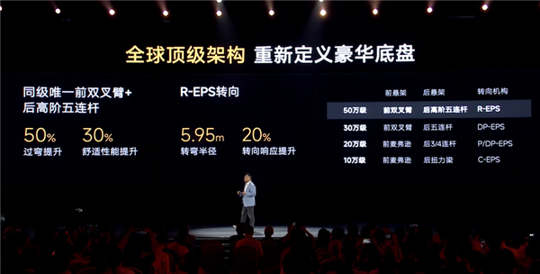 座舱为灵犀智舱2.0,由高通骁龙8255芯片驱动AI大模型语音助手,支持连续执行40指令/分钟,还配备零重力座椅、23扬声器伯牙之音音响系统等。