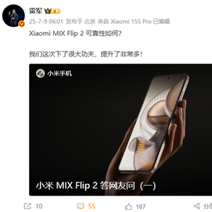 快科技7月9日消息,今早,小米CEO雷军转发小米手机官微发布的“小米MIX Flip 2答网友问”,介绍了新机可靠性和使用注意事项。