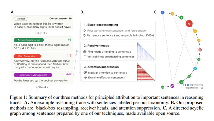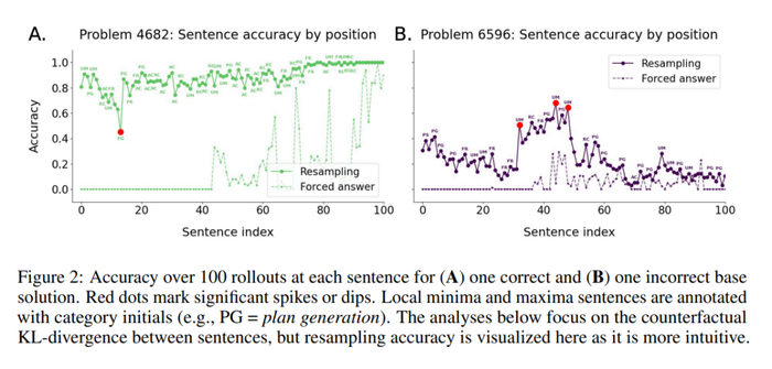 每种方法都为思维锚的存在提供了证据。这些推理步骤非常重要,对后续推理过程产生了不成比例的影响。这些思维锚通常是计划句或回溯句。