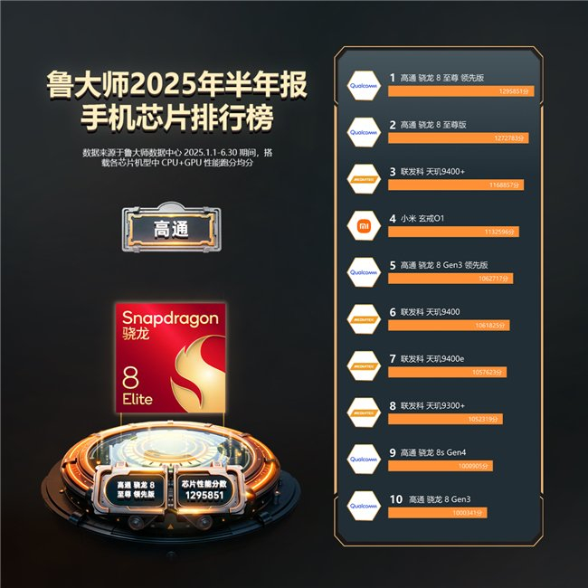 芯片榜:骁龙领先版封神,小米玄戒表现亮眼
