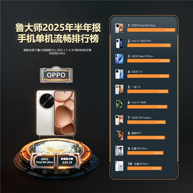 鲁大师2025年手机半年报:ColorOS蝉联流畅霸主,小米玄戒杀入性能前五