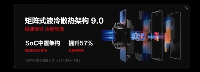 红魔10S Pro+不仅有着骁龙8至尊 领先版加持,在存储规格上还给予顶级的LPDDR5T+UFS 4.1 Pro组合,再结合自身CUBE游戏调度引擎,以及红魔代代相传的主动散热风扇与首发“液金”直触处理器,最终实现近乎"狂暴"的性能释放。