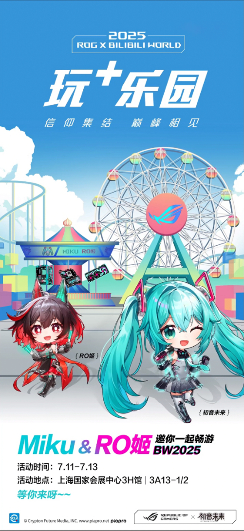值得一提的是,BW2025即将到来!华硕为玩家打造最酷现场,超强装备与互动游戏等你来打卡,MIKU& RO姬邀你一起畅游BW2025!7月11日-13日ROG玩+乐园准时开放,上海国家会展中心3H馆-3A13-1/2等你来玩!