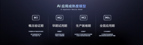 基于此,飞书今天发布了业界首个AI 应用成熟度模型。飞书将 AI 应用分四个等级:M1——概念验证,只做内部演示,别对外发布;M2——早期试用,给愿意尝鲜的用户用;M3——成熟应用,可以大规模使用;M4——完全成熟,在适合的任何场景都可使用。