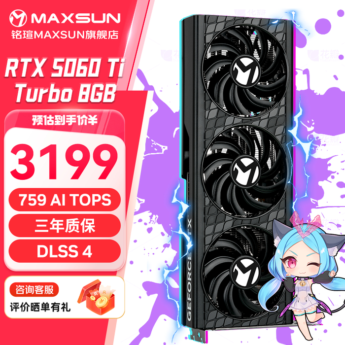 截至IT之家发稿,京东暂时没有看到低于 MSRP(3199 元)的 RTX 5060 Ti 显卡,不过铭瑄 RTX 5060 Ti Turbo 8GB 已经降至 3199 元。