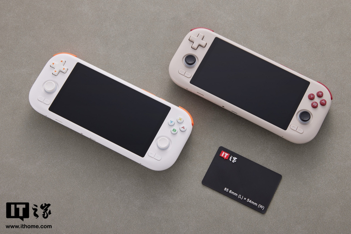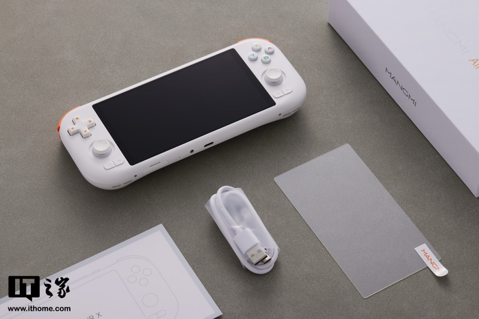 作为一款安卓掌机产品,MANGMI AIR X 外观采用极简设计,IT之家拿到的为白色和复古 GB 配色(其他方面还有黑色配色可选),其外壳采用亲肤材质,在扳机键、方向键采用了橙色撞色设计,颇有种活泼感,正面匹配一块 5.5 英寸 1920x1080 分辨率 60Hz 16:9 比例 IPS LCD 面板,覆盖 110% sRGB 色域。