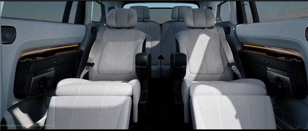 车内采用了2+2+2的六座布局方案,二排座椅为双腿托+双零重力,且二排座椅可左右横移,方便三排乘客的进出。同时,车内的后排娱乐屏也没有缺席,可电动翻转吸顶。至于第三排座椅,同样为高配座位,侧窗和尾窗也配备了电动遮阳帘。