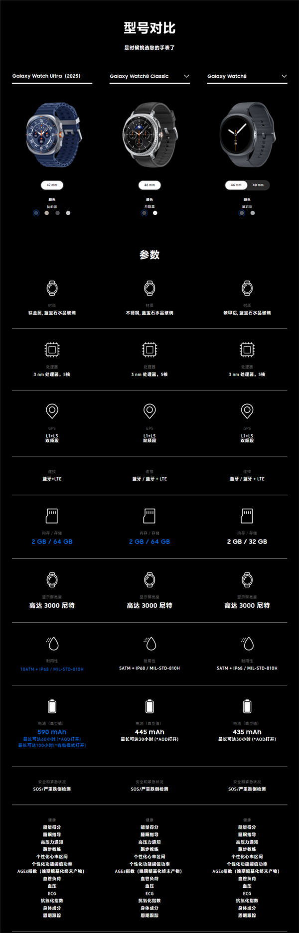 具体型号分别是Galaxy Watch 8、Galaxy Watch 8 Classic、Galaxy Watch 8 Ultra,起售价2299元。
