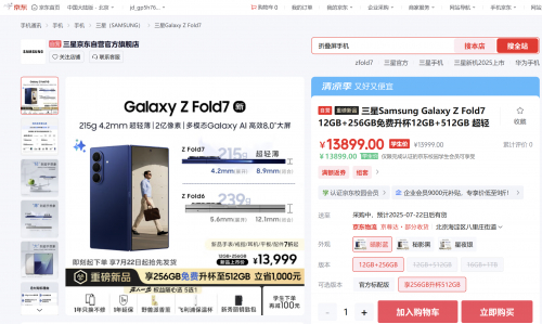 来京东先人一步预定三星Galaxy Z Fold7享权益随心选 7月22日抢先发货