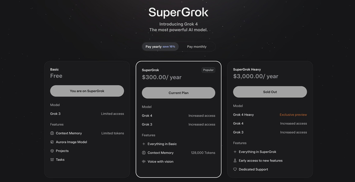 目前,Grok 4 和 Grok 4 Heavy 已全面上线。用户可以通过订阅访问,不过,订阅价格就有点「不讲武德」,最高可去到 3000 美元/年档位,成了不少用户吐槽的焦点。