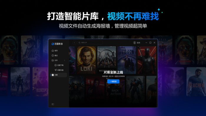 与此同时,所有挂载的网盘及 NAS 设备内的资源将自动同步至迅雷影音智能片库系统。迅雷通过自研算法一键生成精美海报墙,将分散在不同云盘、设备中的视频整合至统一片库中清晰呈现,大幅提升用户查找、观看视频的效率。