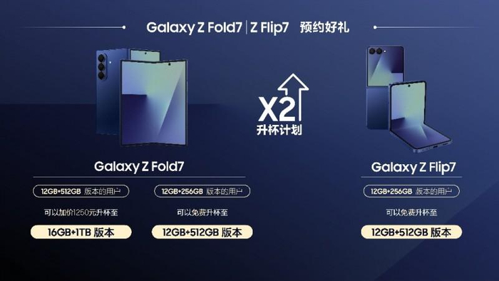 目前,三星Galaxy新品已正式开启预约,三星Galaxy Z Fold7建议零售价13,999元起,Galaxy Z Flip7建议零售价7,999元起,Galaxy Z Flip FE建议零售价6,499元。即日起至7月24日24:00,预约三星Galaxy Z Fold7与Galaxy Z Flip7的用户均可享升杯好礼,即购买12GB+256GB版本,可免费升级到12GB+512GB版本。
