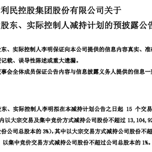 7月10日,利民股份发布公告,公司近日收到公司控股股东、实际控制人李明的《关于计划减持公司股份的通知》,李明拟在本减持计划公告之日起15个交易日后的90个自然日内以大宗交易及集中竞价方式减持公司股份不超过1310.49万股(占扣减回购股份公司总股本的3%)。减持原因系融资还款需求。