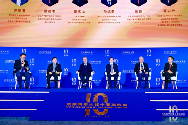 对话环节由许晨阳教授主持,与浙江大学数学高等研究院院长、未来科学大奖科学委员会委员(2017-2020)、未来科学大奖周Steering Committee委员励建书,山东大学教授、2020未来科学大奖-数学与计算机科学奖获奖者彭实戈,浙江大学数学高等研究院教授、2024未来科学大奖-数学与计算机科学奖获奖者孙斌勇,北京国际数学研究中心主任、未来科学大奖科学委员会委员(2016-2018)、未来科学大奖周Steering Committee委员田刚,美国西北大学Pancoe讲席教授、大湾区大学讲席教授、大湾区高等研究院副院长、未来科学大奖科学委员会委员夏志宏等多位数学领域的杰出学者,围绕“过去十年数学进展与华人贡献”、“未来十年中国数学发展期望”、“人工智能与数学”共同探讨数学相关领域的发展趋势与前沿课题。