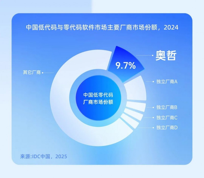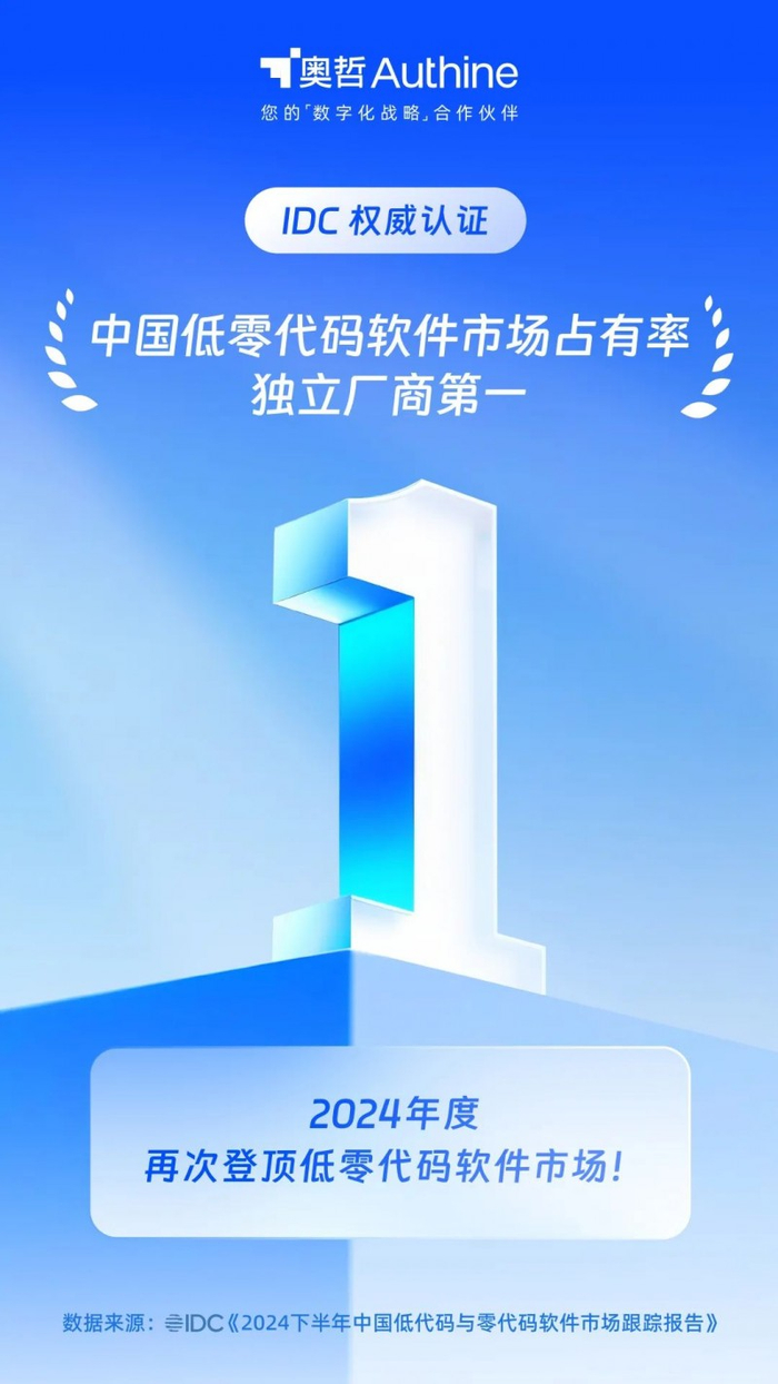 IDC权威发布!奥哲再次获得中国低零代码独立厂商第一!