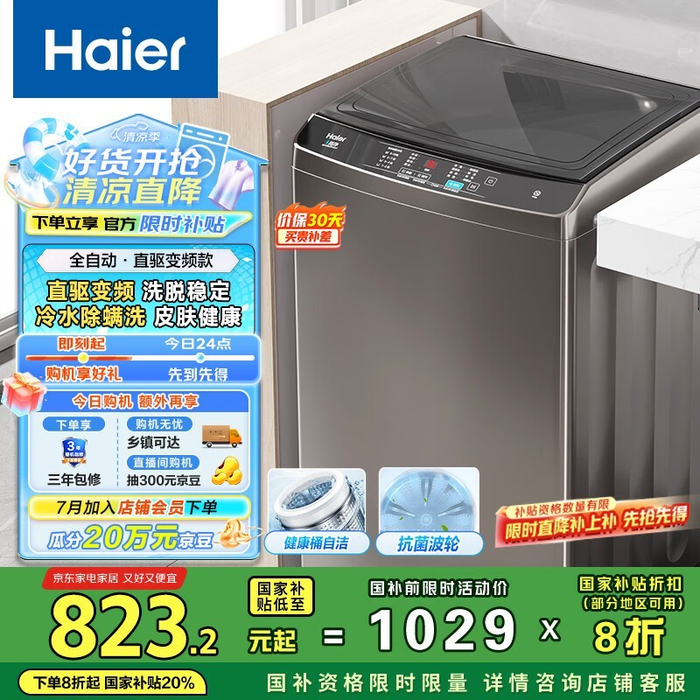 海尔10kg变频波轮洗衣机 京东价823元