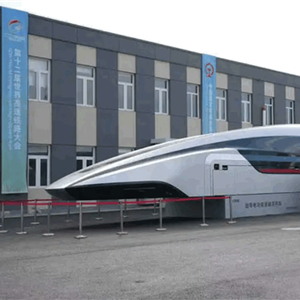 从现场样车来看,超导电动高速磁浮列车的外观极其科幻,车体外壳采用高强度铝合金与碳纤维复合材料,车头部位为流线型造型,有利于降低空气阻力。由于采用磁悬浮动力,车轮被包裹在车体内。