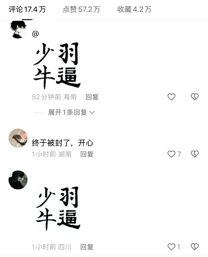 评论区也泾渭分明。一部分说风凉话,称赞封得好,而另一部分就是这些羽家军了,目前为止,他们还在顽固地刷着“少羽牛逼”的表情包。
