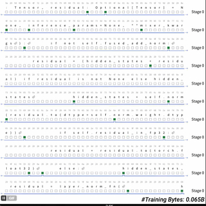 从经验上看,动态分块模块自然地将数据压缩到与 BPE tokenizer 相似的分辨率(每块 4.5-5 字节),并且在没有任何外部监督或启发式方法的情况下,定性地学习到有意义的边界。