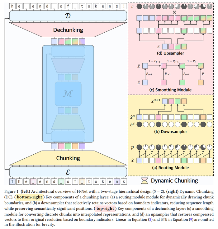 在此背景下,来自 CMU、 Cartesia AI 等机构的研究者提出了一系列新技术,通过动态分块机制实现内容与上下文自适应的分割策略,该机制可与模型其他部分联合学习。将这一机制融入显式分层网络(H-Net)后,原本隐含分层的「tokenization–LM–detokenization」流程可被完全端到端的单一模型取代。