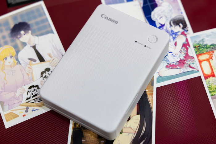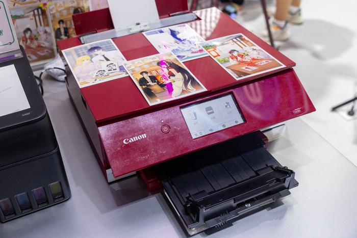 佳能展台提供照片打印体验。其炫飞CP1500(重850g)带触控屏,支持多尺寸打印,速度快且色彩精准。更小巧的炫飞QX20仅重455g,内置电池支持无线打印。两款均可通过手机应用轻松打印照片,留存精彩瞬间。