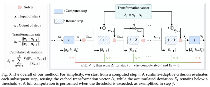 只要Et低于τ,就直接复用上一次完整推理的变换向量,否则重新计算并刷新缓存。