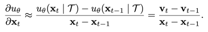 扩散模型的生成过程可以理解为 「逐步去噪」:每一步都从当前潜变量出发,预测噪声并更新状态,逐渐还原出清晰的视频内容。将一个 step 内的全部 DiT blocks 看做一个函数,可以考虑某个 step 的 「方向导数」 的一阶近似: