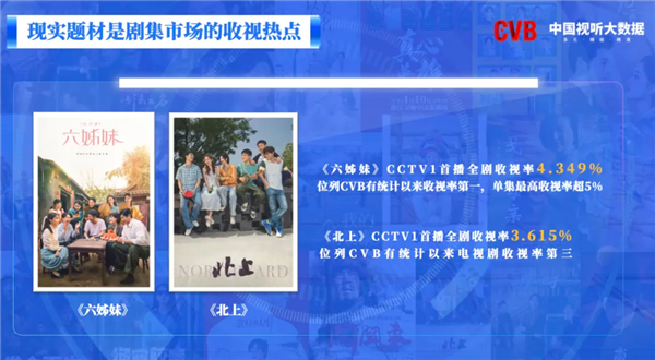 作为现实题材剧的代表,《六姊妹》于大年初六登陆央视一套黄金档,全剧平均收视率达4.349%。