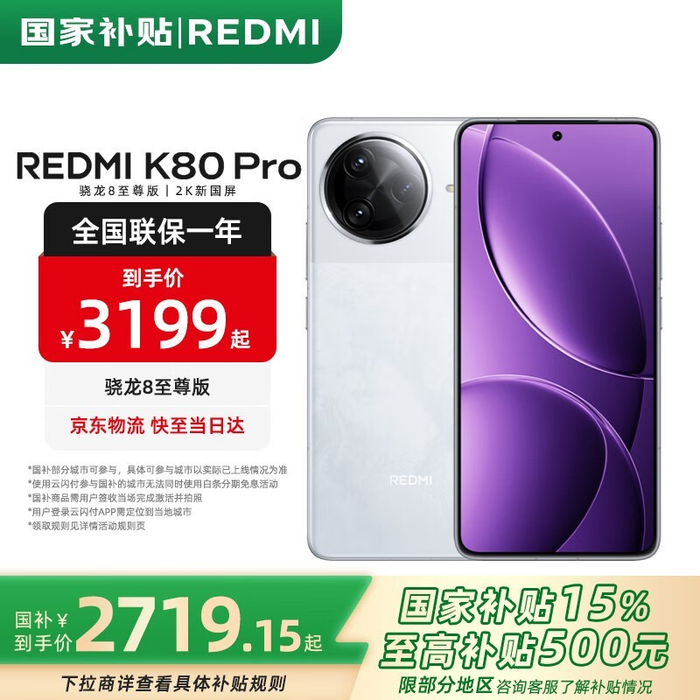 红米K80 Pro 5G手机限时优惠3599元