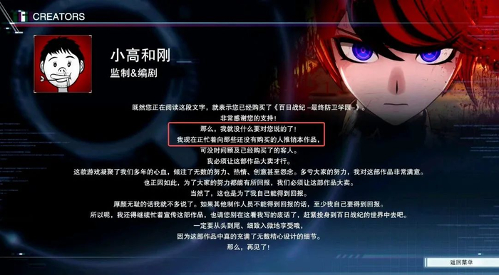 距离《百日战纪-最终防卫学园-》(以下简称《百日战纪》)发售已经过去了70多天,但其制作人小高和刚依旧活跃在中文社交网站上,卖力地给自己的作品带货。他身上由此而来的热度,也同样尚未退却。