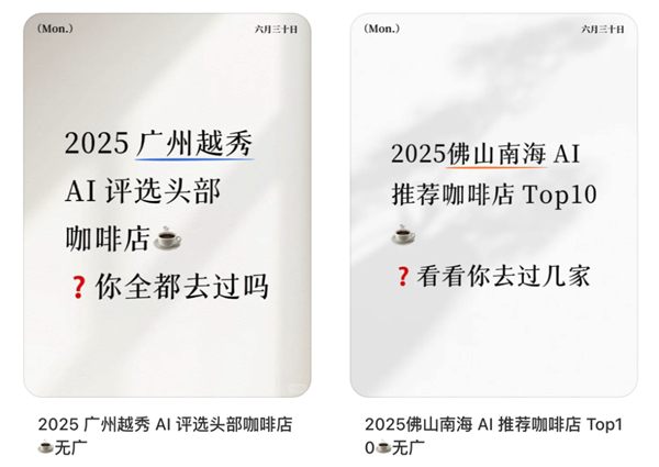就连一些自媒体做 xxx 产品TOP10、餐馆榜单,居然也用 AI 推荐。。。